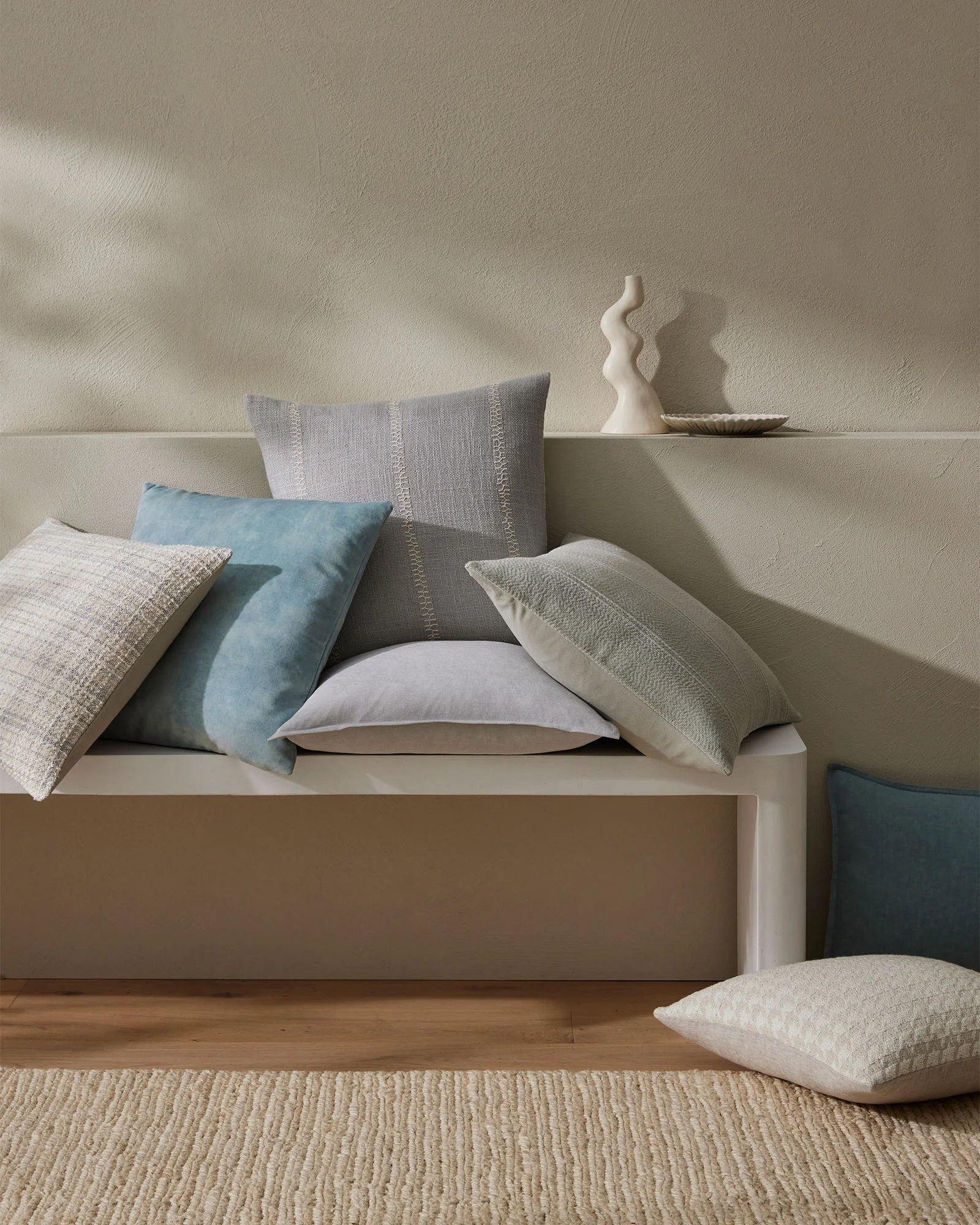 Woven with 95% New Zealand wool and 5% nylon to create a luxe boucle texture.